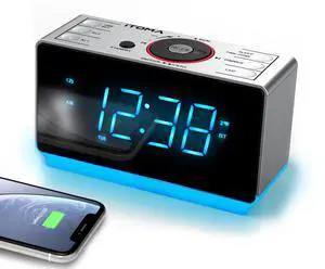 iTOMA Alarm Clock Radio with Bluetooth Speaker, FM Radio, Dual Alarm with Snooze, Large LED Display, Dimmer Control, USB Charging Output and Night Light CKS708