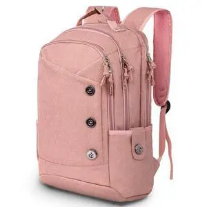 KINGSLONG 15.6 inch Pink Laptop Backpack for Women, Stylish Daypack with USB Charging Port, Water Resistant Computer Bag Notebook Bag Suitable for College Travel Work Gifts