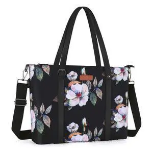 MOSISO USB Port Laptop Tote Bag (17-17.3 inch) with Adjustable Top Handle, Laptop Bag for Women, Hibiscus Polyester Work Travel