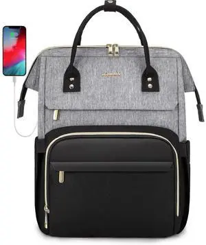 LOVEVOOK Laptop Backpack for Women, Fashion Computer Backpacks Purse, School Student Bookbag for Girl, Business Travel Bags, Doctor Nurse Backpack for Work, Fits 15.6-Inch Laptop, Grey Black