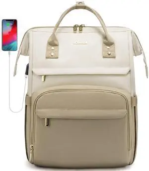 LOVEVOOK Laptop Backpack for Women, Fashion Computer Backpacks Purse, Business Travel Bags, Doctor Nurse Backpack for Work, Fits 15.6-Inch Laptop, Beige-Khaki