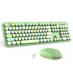 FD Wireless Keyboards and Mouse Combo - 2.4GHz USB Cordless, Cute Wireless Keyboard Round Keys, Quiet and Slim Set for Laptop, Computer, TV and Mac - Milky White Green Colorful