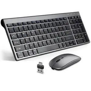 Wireless Keyboard and Mouse Combo,Bluetooth and 2.4G USB Wireless Keyboard and Adjustable DPI Mouse, Rechargeable Slim Cordless Keyboard Mouse Set for Laptop,PC,Notebook,Desktop-Grey