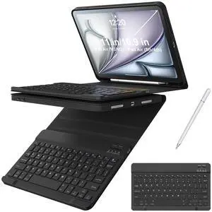GETFRST for iPad Case with Detachable Bluetooth Keyboard (USB-C Rechargeable) & Stylus Pen for iPad Air 11" (M2/M3 2024/2025) air 4th/5th Protective Cover with Pencil Holder, Multi-Angle Stand, Black