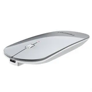 FENIFOX Wireless Bluetooth Mouse, Ultra-Thin Flat and Slim Silent USB-C Rechargeable Travel Mini Portable Mouse for Mac iPad Laptop MacBook Tablet Chromebook - White and Silver