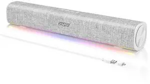 SOULION R100 Bluetooth Computer Speakers with Dynamic LED Light, USB Plug & Play PC Speakers with Switch Button, Clearly Sound Soundbar for Desktop Laptop Monitor White (USB-C to USB Adapter Included)