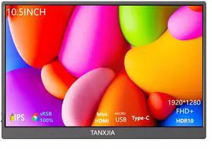 TANXJIA 10.5" Portable Monitor, FHD 19201280 IPS Display, Dual USB-C Ports, Ultra-Slim 420 nits 100% sRGB Second Screen for Laptop, MacBook, Switch & PS5