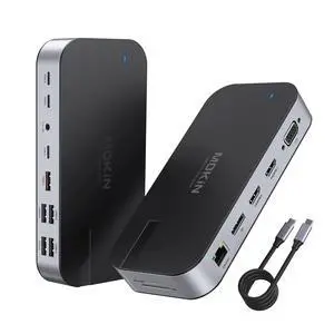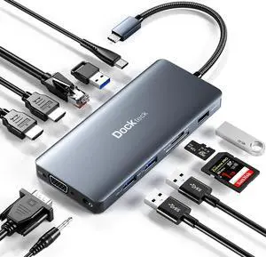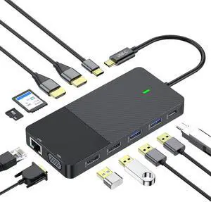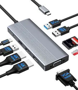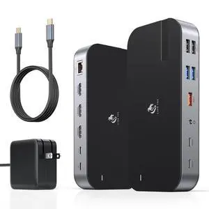 USB C Docking Station Dual HDMI Monitor, Laptop Docking Station Triple Display, with 2 HDMI+DP(4K60Hz), Ethernet, 3 USBC 10Gbps,100W PD, SD/TF 3.0, Audio - for MacBook, Dell, Lenovo, Surface