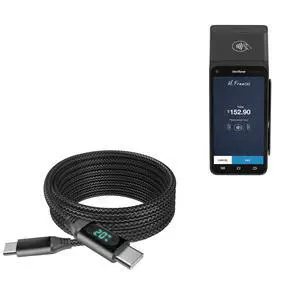 BoxWave Cable Compatible with Verifone T650p - PowerDisplay PD Cable (6ft) - USB-C to USB-C (100W), LED Wattage Info Extra Long Braided Nylon - Jet Black