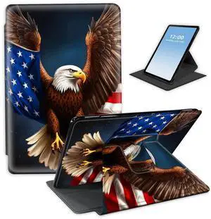 HGGJFLYX Case for Kindle Scribe 10.2 Inch 2022/2024 Tablet,360 Degree Rotating Multi-Angle Viewing Stand Fold Leather E-Book Cover 10.2" Kindle Scribe,Auto Sleep/Wake,Eagle with US Flag