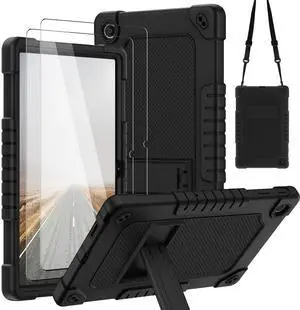 Kebiory for Onn 11 Tablet Pro Tablet Case,with Tempered Screen Protector Shoulder Strap Stand Kids Friendly Shockproof Case for Walmart Onn 11 Inch Pro 2023 (Model:100110027) (Black/Black,2 Pcs)