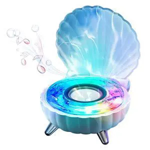 Bewinner Seashell Bluetooth Speaker for PC - Battery Powered Desktop Speakers with LED Night Light, Portable Wireless Stereo Sound for Bedroom/Office Decor - Blue
