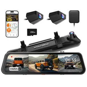 WOLFBOX G900 Tripro Bumper Version 3 Channel 4K Mirror Dash Cam, 8MP STARVIS 2 IMX678 Night Vision, 4K+2.5K+1080P Front and Rear Bumper Dash Cam, 5.8GHz WiFi, Voice Control, Includes 256GB Card & GPS