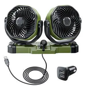 DICMKY Dual Head Car Cooling Fan for Dashboard, DC 5V USB / 12V / 24V Universal Cigarette Lighter Plug Car Fans That Blow Cold Air Cooler for Vehicles Sedan Suv Rv Van Truck Utv Tractor Cab without AC