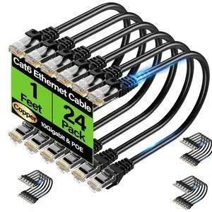 TuokaJu Cat6 Ethernet Cable 10Gbps 2 feet (24 Pack), UTP Ethernet Cable Cat 6, Flexible Bare Copper Cat6 Cable, Cat 6 Network Cable for Server, Data Center, White