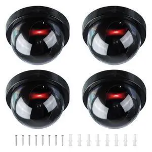 PATIKIL Fake Security Camera, 4Pcs Dummy Dome Cameras with Flashing Red LED Light & Screw for Indoor & Outdoor Home Business, Black