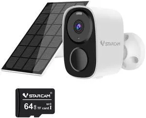 VSTARCAM 2K Solar Outdoor Security Camera with Micro SD Card 64 GB, PIR Motion Detector, Color Night Vision, 2.4GHz&5GHz WLAN, 2-Way Audio, IP66