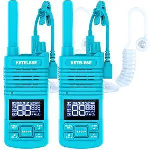 KETELESE T1 Walkie Talkies Long Range with Acoustic Tube Earpiece, Portable FRS Two-Way Radios, USB C Rechargeable walky Talky for Adults, for School Restaurant Church Business(2 Pack), Blue
