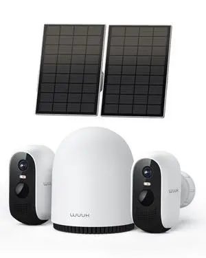 WUUK Solar Security Cameras Wireless Outdoor, Home Surveillance System, 2K, No Monthly Fee, Motion Alert, Night Vision, 2.4/5 GHz WiFi, 32G Local Storage, Compatible with Alexa & Google, 2-Camera Kit