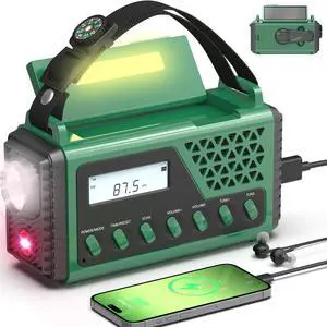 16000mAh Emergency Weather Radio, AM/FM/NOAA Weather Alert Radio Hand Crank/Solar/Type-C Fast Rechargeable Outdoor Radio with Reading Lamp/SOS Alarm/3 Mode Flashlight/Power Bank(Green)