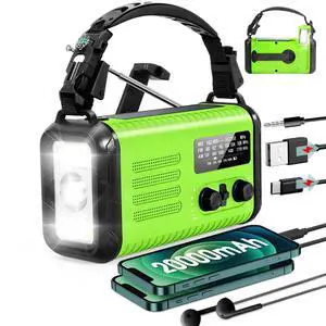 20000mAh/ 74000mWh Emergency Hand Crank Radio, AM/FM/NOAA Portable Weather Radio, Battery Powered Solar Radios with USB Phone Charger, Reading Lamp Flashlight & SOS for Emergency/Hurricane/Home