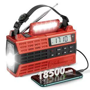 NOAA Weather Radio AM/FM,Portable 7400mWh/2000mAh Rechargeable Battery Operated with USB-C/Hand Crank/Solar Charging,Bluetooth Connectivity,Light,SOS Alarm,Ideal for Camping,Hurricane and Storm
