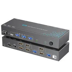 KVM Switch 2 Computers 2 Monitors HDMI, 8K 60Hz 4K120Hz 2 Port Dual Monitor KVM Switches for 2 PC Share 2 Display and Four USB 3.0 Devices