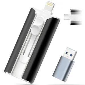 MFI Certified 512GB iPhone Flash Drive Photo Stick and USB Stick Offers Photo/Video Storage, The External Storage Jump Drive is Compatible with iOS, Android, and Pc (Black)(Available Space: ~484GB)