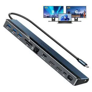 Triple Monitor Docking Station, 14-in-1 USB C Hub with DP 8K@30Hz/4K@144Hz, Dual HDMI 4K@60Hz, 100W PD, 7 USB Ports, SD/TF Card Reader, Gigabit Ethernet for MacBook & Windows Laptop