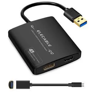ELECABLE USB3.0 to HDMI+DisplayPort Adapter - HDMI 4K+DP 5K@60Hz Ultra HD - Built-in DisplayLink DL6950 Chip - Extend Screen to Multi-Monitor Compatible with Windows,Mac OS,Android,Chrome OS,Ubuntu