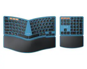 ProtoArc Bluetooth Ergonomic Keyboard, Wireless Split Keyboard with Separate Number Pad, Dual Bluetooth and USB, Hard Wrist Rest, Rechargeable for Windows/Mac/Android - Blue