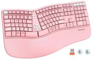 MEETION Ergonomic Keyboard with Cushioned Wrist Rest, Bluetooth Wireless Keyboard Rechargeable, Split Curved Keyboards Natural Typing, Full Size Multi-OS Windows/Mac, Computer/Laptop/Tablet/, Pink