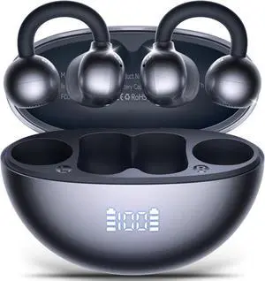 LICAEVEY Clip On Wireless Earbuds, Bluetooth 5.4 Water Proof ENC Noise Cancellation, 30H Long Playtime Portable Clip On Earphones with 300mah Charging Case, Silver