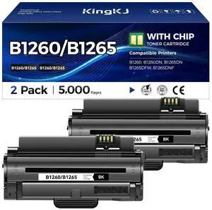 KingKJ B1260 B1265 Black Toner Cartridge 2-Pack High-Yield Replacement for Dell 1260 1265 331-7328 Toner Compatible for Dell B1260 B1260DN B1265DN B1265DFW B1265DNF Laser Printer Ink All-in-One Copier