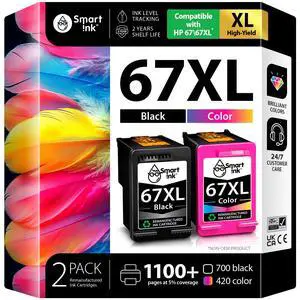 Smart Ink Remanufactured Ink Cartridge Replacement for HP 67 XL 67XL (Black & Tri-Color) for DeskJet 2755e 2755 2855e 4155e 4255e 2734e Envy 6055 6055e 6455e 6458e 6455 6458 DeskJet Plus 4155 Printer