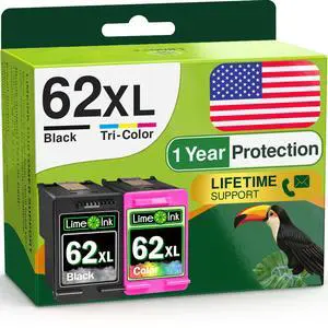 Limeink Remanufactured Ink Cartridge Replacement for HP 62xl Ink Cartridges Black and Color for HP 62 XL Cartridges for Envy 7640 Printer 62xl Black Color Combo Pack 2P
