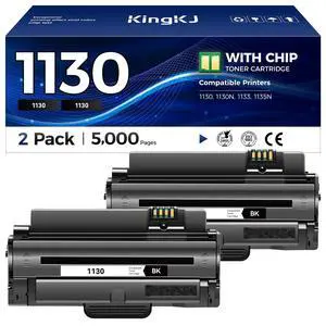 KingKJ 3J11D 1130 Black Toner Cartridge 2-Pack High-Yield Replacement for Dell 3J11D 1130 1133 1135 Toner Compatible with Dell 1130 1130N 1133 1135N Laser Printer Ink All-in-One Copier2,500 Pages