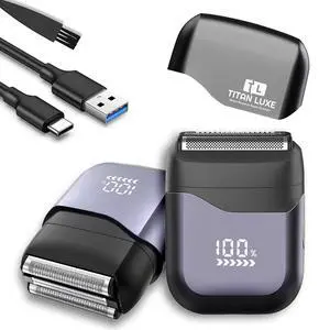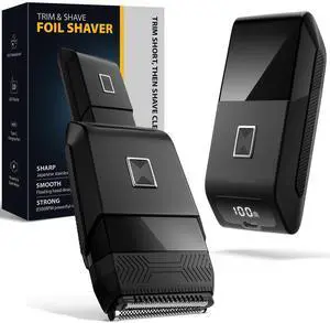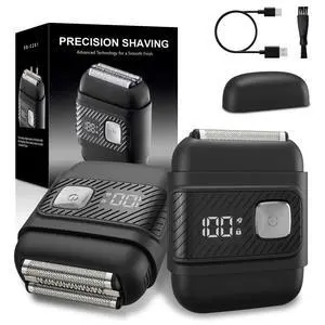 Electric Foil Shavers for Men: Mini Electric Razor for Beard/Face with 3 Floating Blades & LED Display, Cordless Face Shaver with IPX6 Waterproof Wet/Dry, USB-C Fast Chage & Travel Lock, Carbon Black