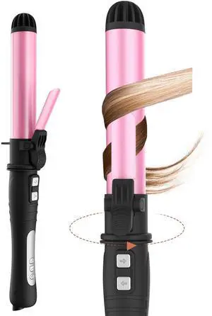 Hair Curler Automatic Rotating1.25 Inch Automatic Hair Curler with Adjustable Temp 180°F to 410°F & LCD Display, Dual Voltage Beach Waves Curling Iron for Effortless Beach Waves
