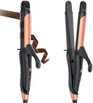 Dual Voltage Curling Iron 2-in-1 Curling Iron 1 Inch,(100V~240V) Dual Voltage Hair Straightener Travel CurlingIron European Flat Iron(Black)