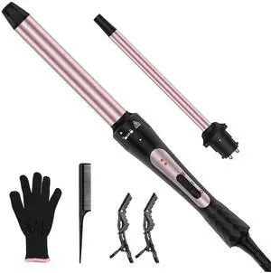 2 in 1 Curling Iron Wand Set - 0.35" & 1" Interchangeable Ceramic Barrels for Tight Curls & Waves, Dual Voltage Fast Heating Hair Wand Curler, Travel-Friendly for Short Long Hair