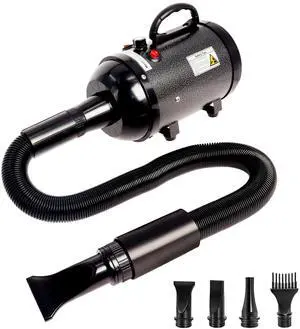 Dog Hair Dryer High Velocity Professional Dog Blow Dryer with Adjustable Speed Dog Pet Grooming Dryer Blower with 4 Nozzle 2 Blow TemperatureBlack