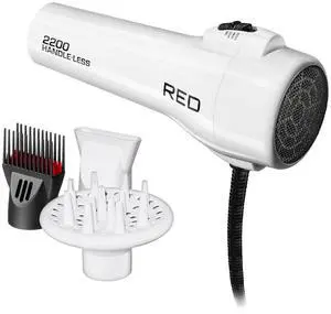 HandleLess Blow Dryer 2200W Ceramic Tourmaline White Color, 3 Heat Settings, Pik and Diffuser Included Comfortable Grip, Ionic for Frizz-Free Shine, Detangler & Straightening