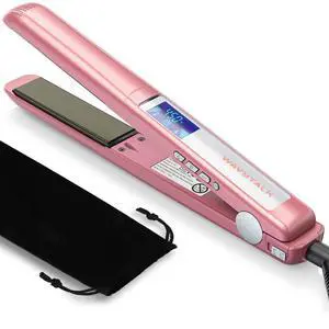 Salon Flat Iron Hair Straightener, Negative Ion Function with Titanium Plates Get Shinier & Smoother Hair, 15 Adjustable Temp, Dual Voltage & 60 Mins Auto Shut Off (Rose Gold)
