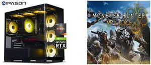 IPASON Ryvex Gaming Desktop, Ryzen 7 7800X3D, NVIDIA RTX5070 12GB,32GB DDR5 RAM, 1TB M.2 NVMe,Windows 11 home,WIFI,360MM Liquid Cooler, ARGB Fans, AI Ready,850W Gold PSU, Prebuilt Gaming Pc Monster Hunter Wilds - PC [Steam Online Game Code] - $1,919.98