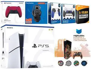 Sony Playstation 5 Slim Disc with Extra Cosmic Red Controller, Plantronics Headset, Trigger Stop Kit, FPS Grip Kit and MightySkins Decal Voucher + 1 Year CPS Extended Warranty