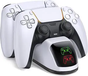 Upgraded PS5 Controller Charger, Fast Charging Dualsense Charging Station for Dual PlayStation 5 Controllers with LED Indicator, White