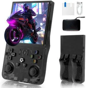 R36MAX Handheld Game Console, Built-in 4000mAh Battery, 4K HD 4" IPS Glass Screen, Supports 18000+ Classic Games, Linux-Based Retro Gaming Console (Black)