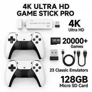 New Retro Gaming Console & Game Stick Pro - 20,000+ Classic Video Games, 23 Emulators, Dual Wireless Controllers, 4K HDMI Output, Plug & Play, Compatible with TV, PC, Projector, 64GB