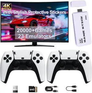 2026 Upgraded Retro Gaming Console with 20k+ Classic Games & 23 Emulators, 4K HDMI Plug & Play Game Stick for TV, Includes Dual 2.4G Wireless Controllers & Skin Stickers (64GB)